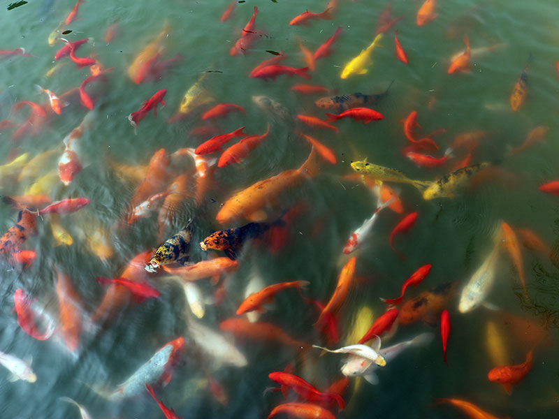 人工湖中暢游的魚兒